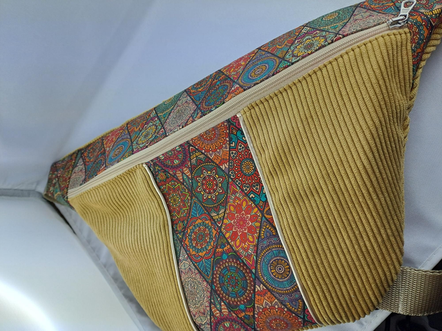 Sac banane bi matière - moutarde et arabesques - NazaréSac banane bi matière – moutarde et arabesques – Nazaré